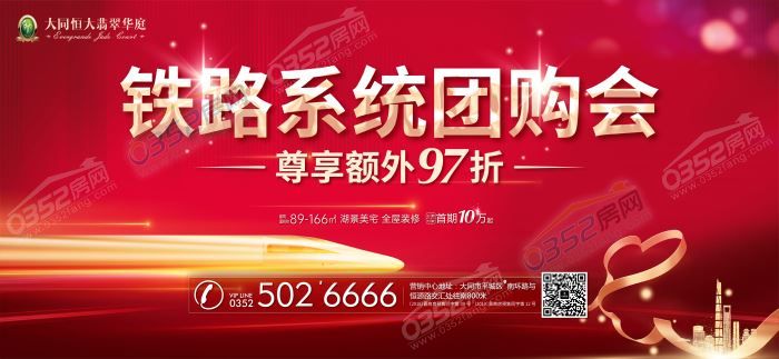 3、12月12日,恒大翡翠华庭“双十二”铁路系统团购会,尊享额外97折优惠,分期付款首付10万起。