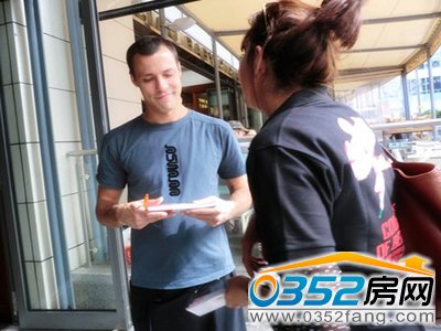 part-time留学生派发多彩北京文化与艺术展门票,热情地为当地游客讲解