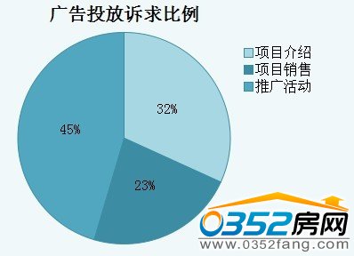 广告中,诉求点是关键内容,在此次统计中,有近半的楼盘投放信息是相关的活动推广,其次是开发公司项目介绍,而其中项目销售占一定部分,关于商铺广告也有出现,值得注意的是,推广活动日益成为项目方宣传的重点。