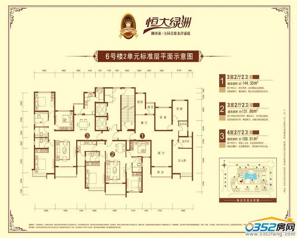 大同恒大绿洲位于大同市“一轴双城”中的御东新区板块,是大同市城市向东发展的核心区域,占据首屈一指的潜力地脉,有“新区浦东、大同门户”之称。项目总建筑面积约71万㎡,绿地率高达38.5%,内拥7700㎡壮美大湖,外连大同最大的生态湖文瀛湖,毗邻大同御河水岸生态园,自然环境得天独厚,并汲取欧陆百年建筑精髓,融入现代简约的流畅节奏,缔造大同首席水岸豪庭巅峰之作。项目首期规划建筑面积约34万㎡,涵盖多重户型配比。90-170㎡奢装湖景豪宅,私享270超大景观飘窗,同时倾力构筑世界级欧陆皇家园林;满屋名牌9A精装;超豪华航母级配套,全面勾勒东南亚板块地标性建筑群落,缔造低容积率、高性价比的私属湖景豪宅。