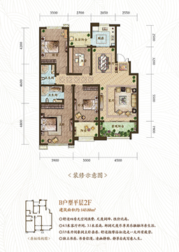 D2丨四室两厅 建筑面积约98.06㎡/赠送面积约35㎡/实得面积约133.06㎡————(D4户型与D2户型结构相同,面积等稍有差异)