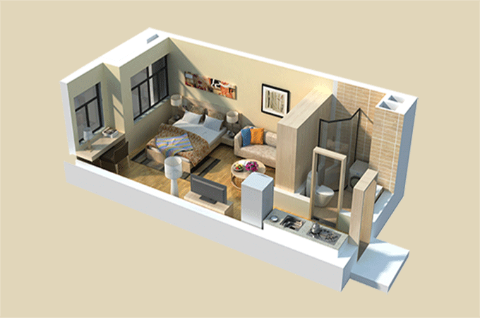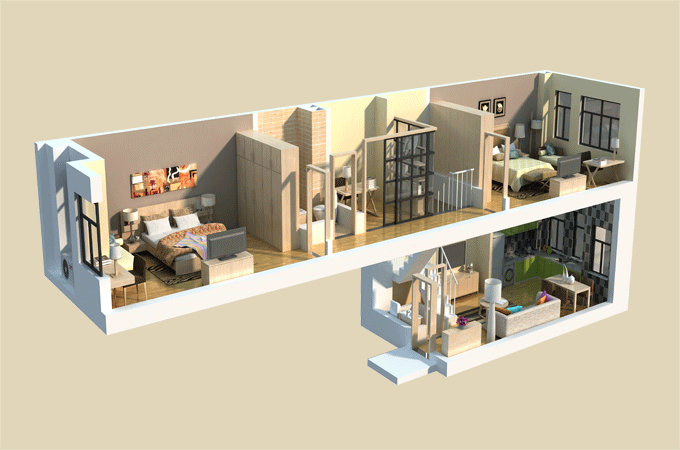 伦敦街铂金SOHO公寓,大胆创新户型设计,采用板式跃层结构,形成上下区隔的居住空间,跃层结构完美分割起居室及卧室,网生活与休息互补干扰。出去跃层这一新设计外,公寓还首次实现了公寓户型的全部朝南,在确保居住功能河舒适性的前提下,公寓还有总面积小、总价低、投资风险小的优点,让置业者轻松置业。