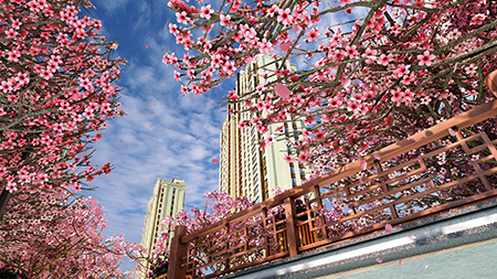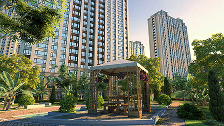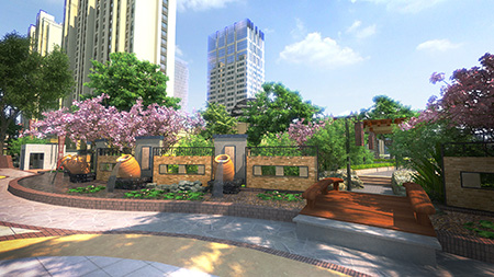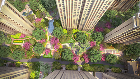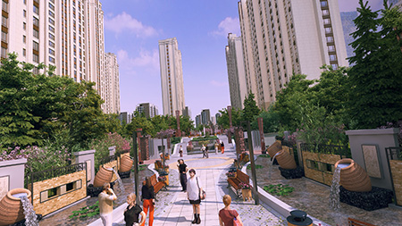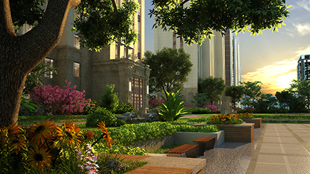 项目整体采用ARTDECO建筑风格,聘请了清华大学园林设计院打造园林景观,将新中式四季园林引入项目,全部采用全冠移植法,植入山桃、银杏、白蜡、国槐等珍稀植被,组成极具景观特色的四季园林,在您入住之时即可感受到生机盎然的成熟景观效果