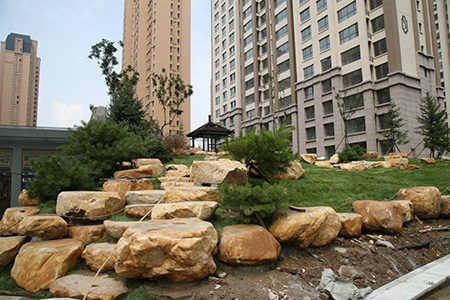 。通过中央旱地喷泉广场来到第三层台地大型叠石景观——林泉高致,运用千年珍品泰山石,泰山石有镇宅辟邪、吉祥祈福的寓意