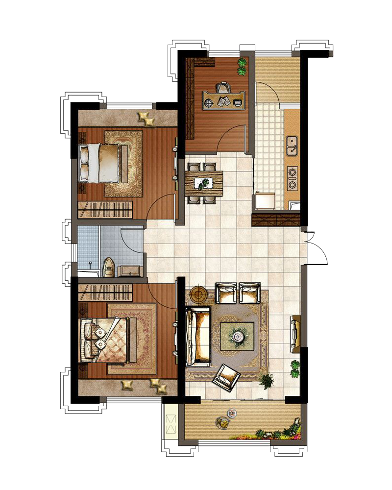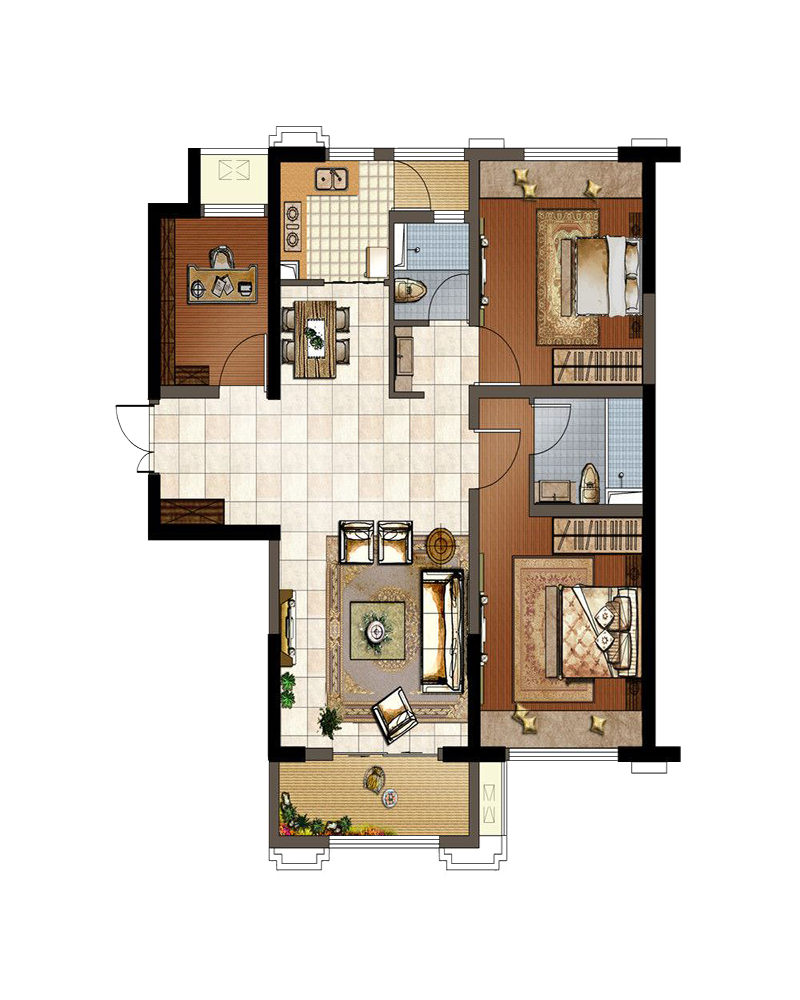 推荐理由:经典刚需小三居户型,南北通透,布局合理,卫生间在两个卧室之间,使用比较方便! 全明户型,采光通风佳;人性客厅连接景观阳台;餐厅、书房、卧室、客厅、卫浴房屋功能分明,是当下适合刚需族的热销户型。