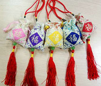 端午节除了吃粽子、绿豆糕外,悬挂“粽子香袋”“五彩香包”的习俗显得很特别,香袋做成各种图腾,有的香包中放有中草药,有祝福祝寿、防疫祛病、避瘟驱毒、企盼吉祥美好的内涵……