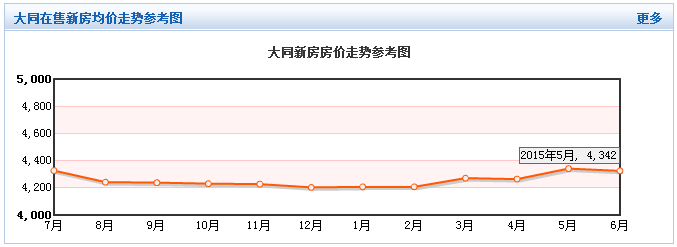 据0352房网数据中心有关大同在售新房均价走势参考显示,目前大同在售楼盘,2015年4月份统计大同楼盘均价为4265元/㎡,5月份统计大同楼盘均价为4342元/㎡。房价在2015年5月和4月相比,5月出现小幅上涨。