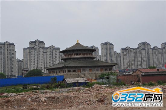 颐园的东侧便是明堂公园了,据颐园工作人员人员介绍以后的颐园正门就是售楼处对面,现在因为建设情况,在公园北侧开门,供施工车辆进入。下图是明堂公园的实景图,大家可以看到,主体已经起来,但是很多细节还没有做到位,远处的灰色楼座为柳港园安置区。