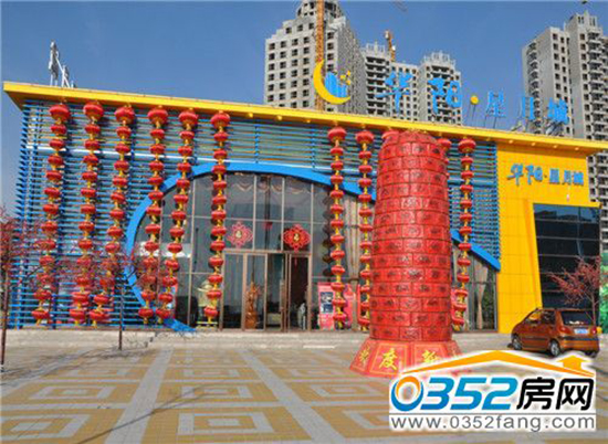 华阳星月城项目售楼部实景图华阳星月城为华阳日月城二期项目,位于校南街和开源街交汇处,是大同市华阳房地产开发有限责任公司旗下项目。得 房 率:85%,建筑面积:28000㎡,绿化率:30%,占地面积:20000㎡,容积率:2.98。