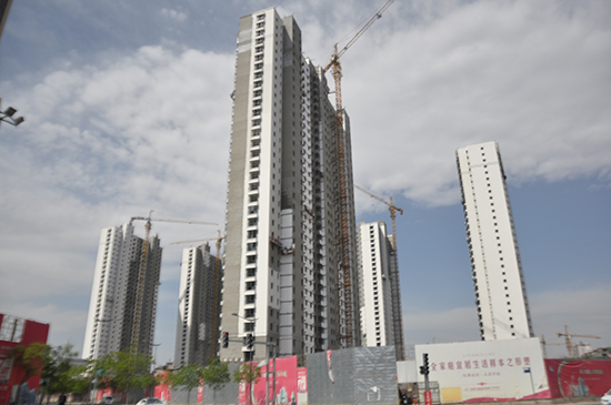 华阳星月城高层已封顶现正粉刷楼体外立面