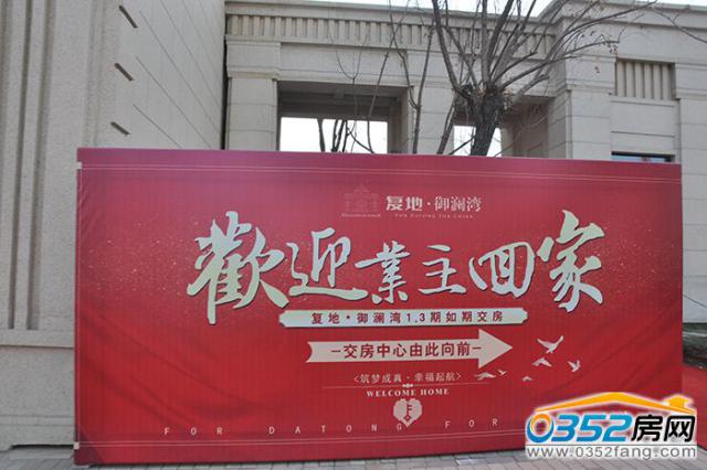 (2016)晋商房预售同字第15号本页面的预售许可证信息仅供参考。 摘要:2017年11月15日-11月17日,对于复地·御澜湾及业主来说都是十分重要的日子,在广大业主翘首期盼中如期交房,为广大业主送上寒冬的温暖。接下来,跟着小编去交房现场看一看。 咨询电话:400 876 0352 转 0020 为了迎接广大业主回家,复地·御澜湾售楼部可谓“精心装扮”一番,红色地毯,红色拱门及迎风飘扬的空飘,洋溢着温馨喜庆的气氛。交房现场一片井然有序,业主们对于即将拿到新房钥匙的喜悦溢于言表。  售楼部实景图  交房现场 一进小区,就看见醒目的“欢迎业主回家”的展板,每个单元门口铺设地毯,花环拱门来欢迎业主回见。各栋楼高高矗立,达到交付使用的条件,并且小区内园林景观基本铺设完成,喷泉、雕塑、休息亭都已建设完成,可供业主使用的高端会所也已经进入装修阶段。可以想象业主的未来幸福生活。  小区内展板  单元门实景图  喷泉实景图  雕塑实景图 复地·御澜湾1.3期已如期交房,欢迎广大业主回家,早日住上自己的理想家! 0352房网独家首发,转载请注明出处及网址,违者必究!