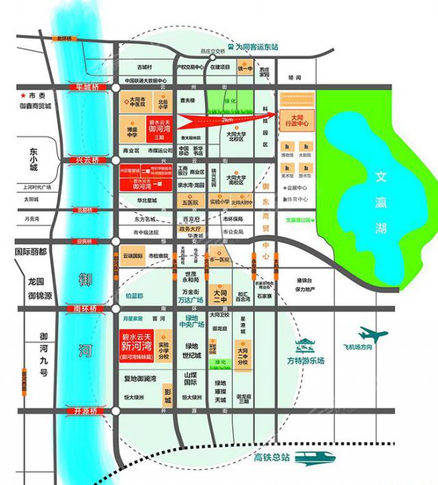 居兴云桥畔,享御东繁华,碧水云天·御河苑位于永和路与兴云街交汇处,览御河、文瀛湖无限美景,一路向东可达东客站,距行政中心太阳宫亦不远,临近大同市中医院,周边有北师大附中与北岳小学等学校,关怀每个孩子的成长。完善的配套,让您居住在碧水云天·御河苑的每一天都舒适、便捷。