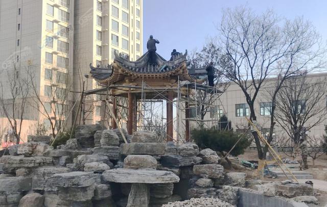 而在小区的南侧设有一处音乐喷泉,湖岸平整,深浅适中,此时工人师傅们仍在进行施工,争取为各位业主早日呈现出美丽的景致。