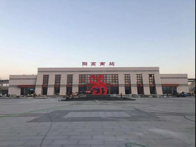 阳高南站为新建站,地处阳高县城东南,阳高南站站房工程从去年6月21日正式开工建设,站房总高度17.25米,总建筑面积4999.8平方米,雨棚覆盖面积7200平方米;站房中间候车厅为1层,两侧办公区、功能区为2层。