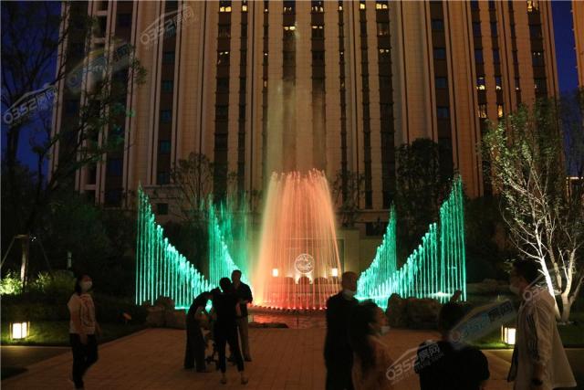 暖色的灯光映衬着园中景色,晚风与喷泉带来阵阵凉意,府中视野开阔,庭间风景正好,别有一番滋味。