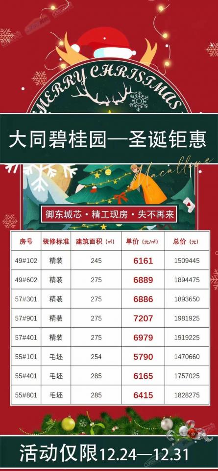 大同碧桂园活动来袭:圣诞特惠 特价房源来袭!