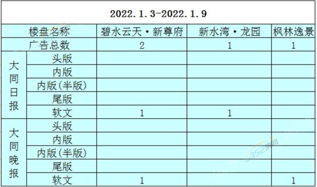 统计媒体:大同日报、大同晚报、0352房网、蓝博沐961电台