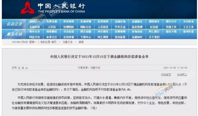2021年12月15日,中国人民银行正式下调金融机构存款准备金率0.5个百分点,为2021全年内第二次降准。