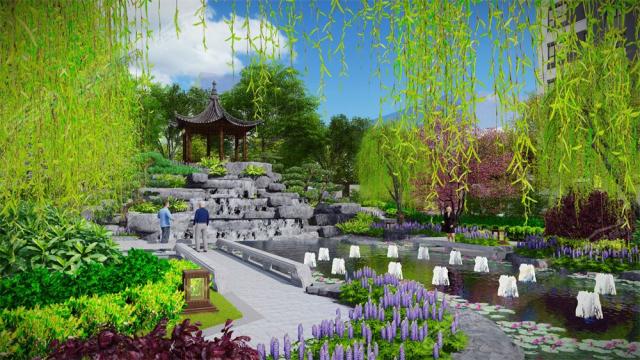 晋都府“云中八景”主题园林,根据光照条件不同,合理设计植物种植空间,植物品种丰富,层次分明,建造完成后,于家中阳台放眼望去,园中四处都会充斥着生机与活力。