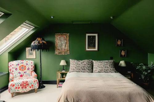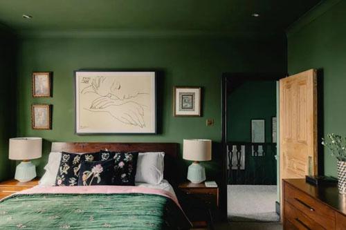 卧室:复古森林绿里的一片岁月静好