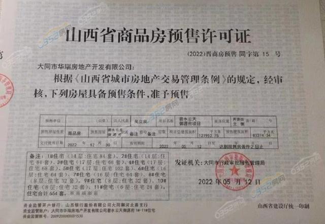 (2022)晋商房预售同字第15号本页面的预售许可证信息仅供参考。