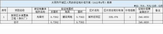 根据《中华人民共和国土地管理法》第47条规定,现将《新荣区水源置换工程(净水厂)项目》征收土地的相关征地补偿安置方案公告如下: