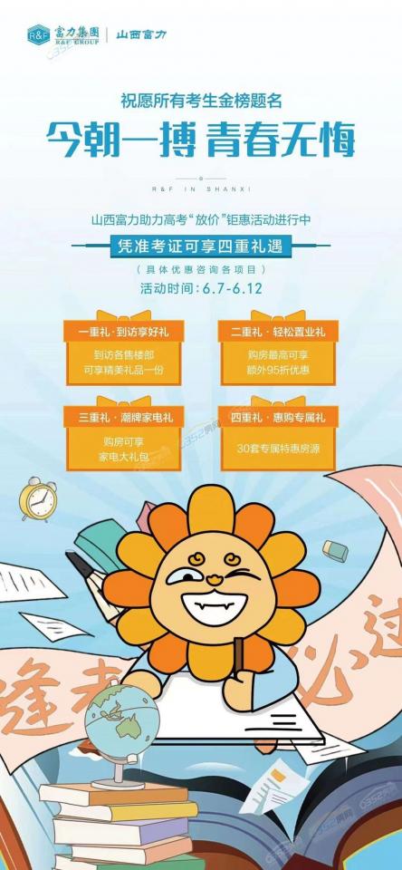 摘要:大同富力高考购房优惠活动来啦!凭准考证到访及成交均有好礼相赠,一起来看看吧!