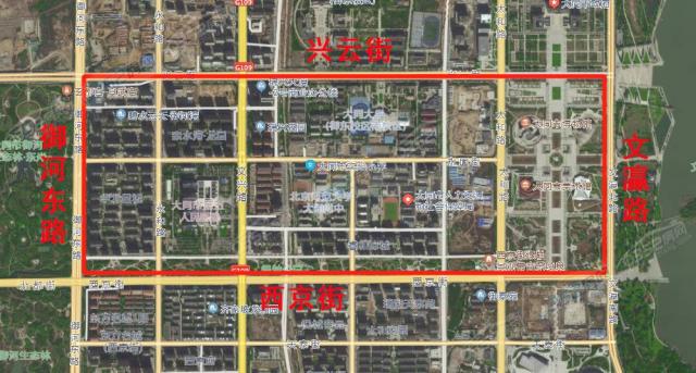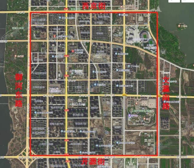 御河以东,西京街以南,文瀛路以西,开源街以北行政区划内。