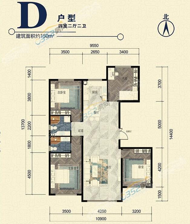 6月28日,月亮湾·湾4#2单元开盘,户型建面约150㎡。