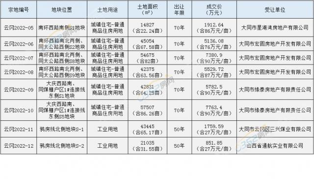 总额3.6亿元 大同云冈区6宗居住用地成交!