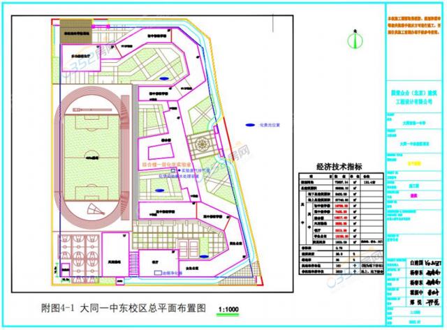主要建设内容与规模:大同一中东校区主要新建1栋初中部教学楼、1栋高中部教学楼、1栋综合楼、风雨操场、餐厅、学生公寓,地下停车场和设备间。