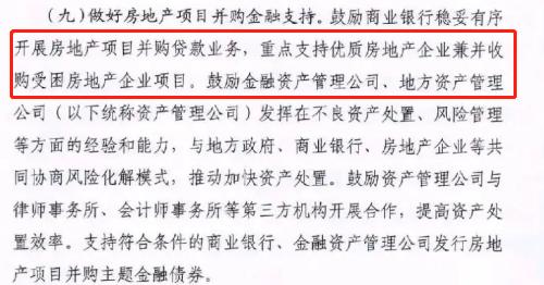 政策中提出,对市场主体的兼并购的鼓励,重点支持优质房地产企业兼并收购受困房企的项目,还有鼓励资管公司介入,鼓励第三方专业机构开展合作等。
