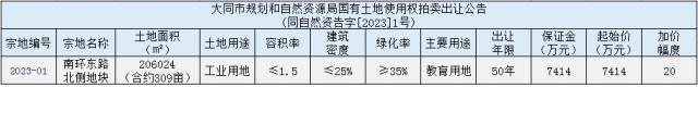 以上就是本次土地出让的全部内容啦,本次教育用地则是在为云州区职教城的建立做前期的准备,期待该处职教城的正式投入使用!后续土地成交情况0352房网也将及时更新,敬请关注!