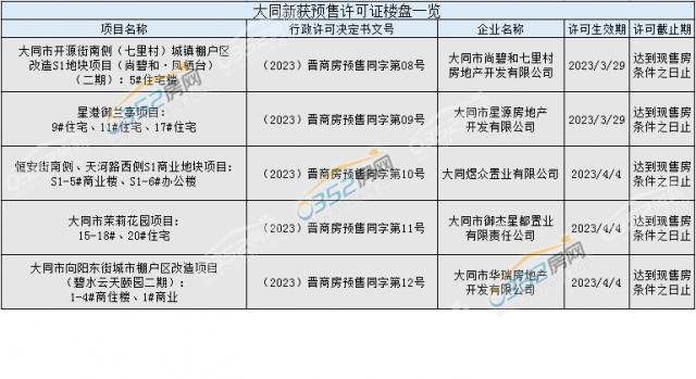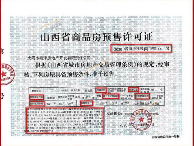 我们先来看看山西省商品房预售许可证上都有哪些内容吧!