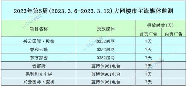 2023年第5周(3.6-3.12)大同楼市主流媒体监测