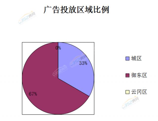 本周大同房地产广告从投放区域来看,御东占6条,占比67%,市区占3条,占比33%其他区域无广告。