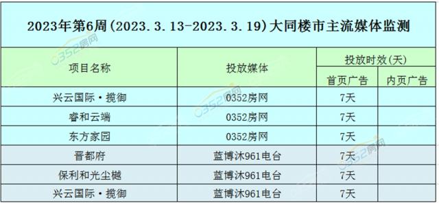 2023年第6周(3.13-3.19)大同楼市主流媒体监测