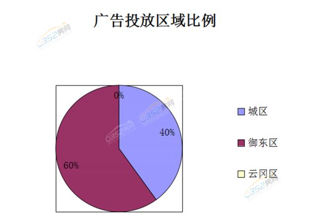 本周大同房地产广告从投放区域来看,御东占9条,占比90%,市区占1条,占比10%其他区域无广告。