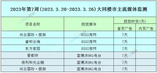 2023年第7周(3.20-3.26)大同楼市主流媒体监测