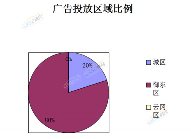 本周大同房地产广告从投放区域来看,御东占4条,占比80%,市区占1条,占比20%其他区域无广告。