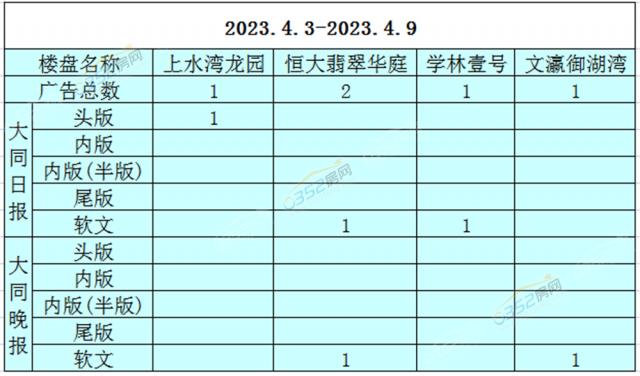 统计媒体:大同日报、大同晚报、0352房网、蓝博沐961电台