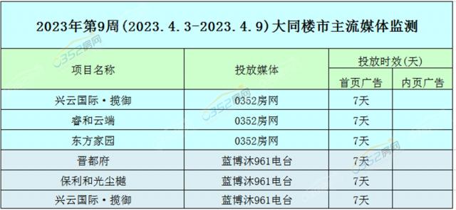 2023年第9周(4.3-4.9)大同楼市主流媒体监测