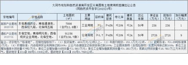 总面积约149亩 大同经开区两宗土地挂牌出让