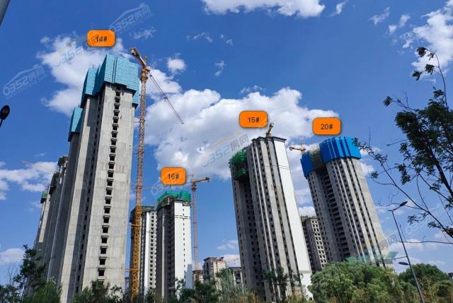 恒大悦府二期,各楼栋即将全线封顶,部分楼栋进行外立面建设。