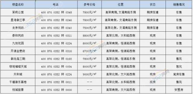 目前,同煤快线东段沿线共有11个楼盘,其中在建楼盘有3个,分别为茉莉公馆、星港御兰亭和龙泉悦府,其余楼盘均为现房;从销售情况来看,在售楼盘有7个,其余3盘建成年限较早,已经售罄;悦城丽景为安置房,不作销售。