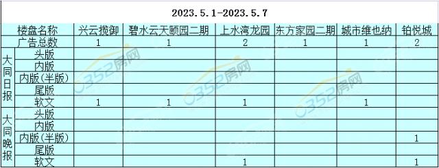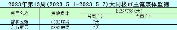 2023年第13周(5.1-5.7)大同楼市主流媒体监测