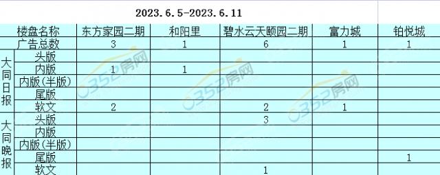 2023年6月5日至2023年6月11日,共有2个项目在0352房网投放广告。