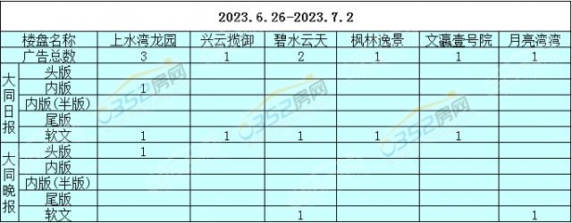 2023年第21周(2023.6.26-2023.7.2)大同楼市主流媒体监测