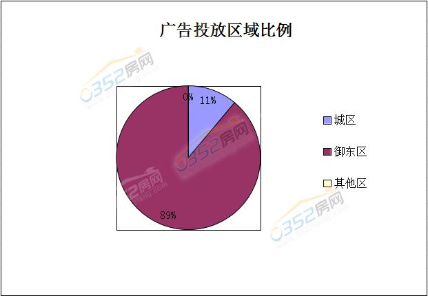 本周大同房地产广告从投放区域来看,御东占8条,占比89%;城区占1条,占比11%。
