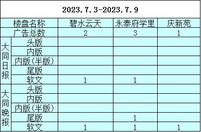 2023年第22周(2023.7.3-2023.7.9)大同楼市主流媒体监测